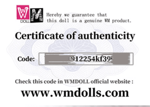 WM Doll a maintenant lancé un service de vérification afin que vous puissiez avoir l'esprit tranquille, protéger vos parties sensibles et vérifier l'authenticité de votre achat de poupée d'amour. Chacune de leurs poupées est livrée une carte qui possède un code anti-contrefaçon.Voici un guide étape par étape pour contrôler l'authenticité de votre sex doll, y compris un lien vers le site WM Dolls ci-dessous: